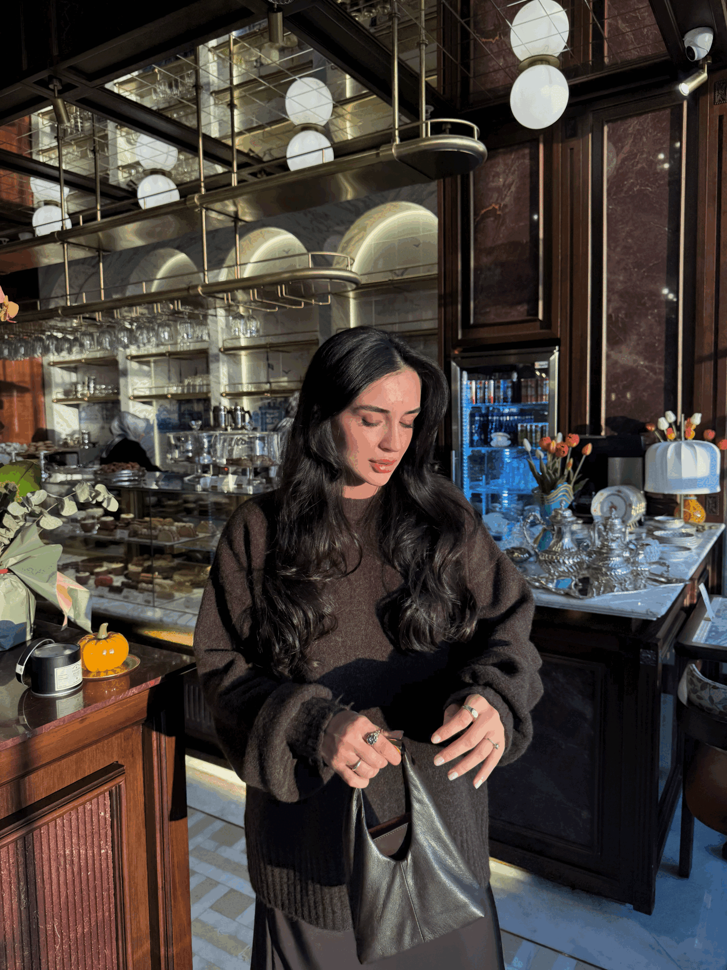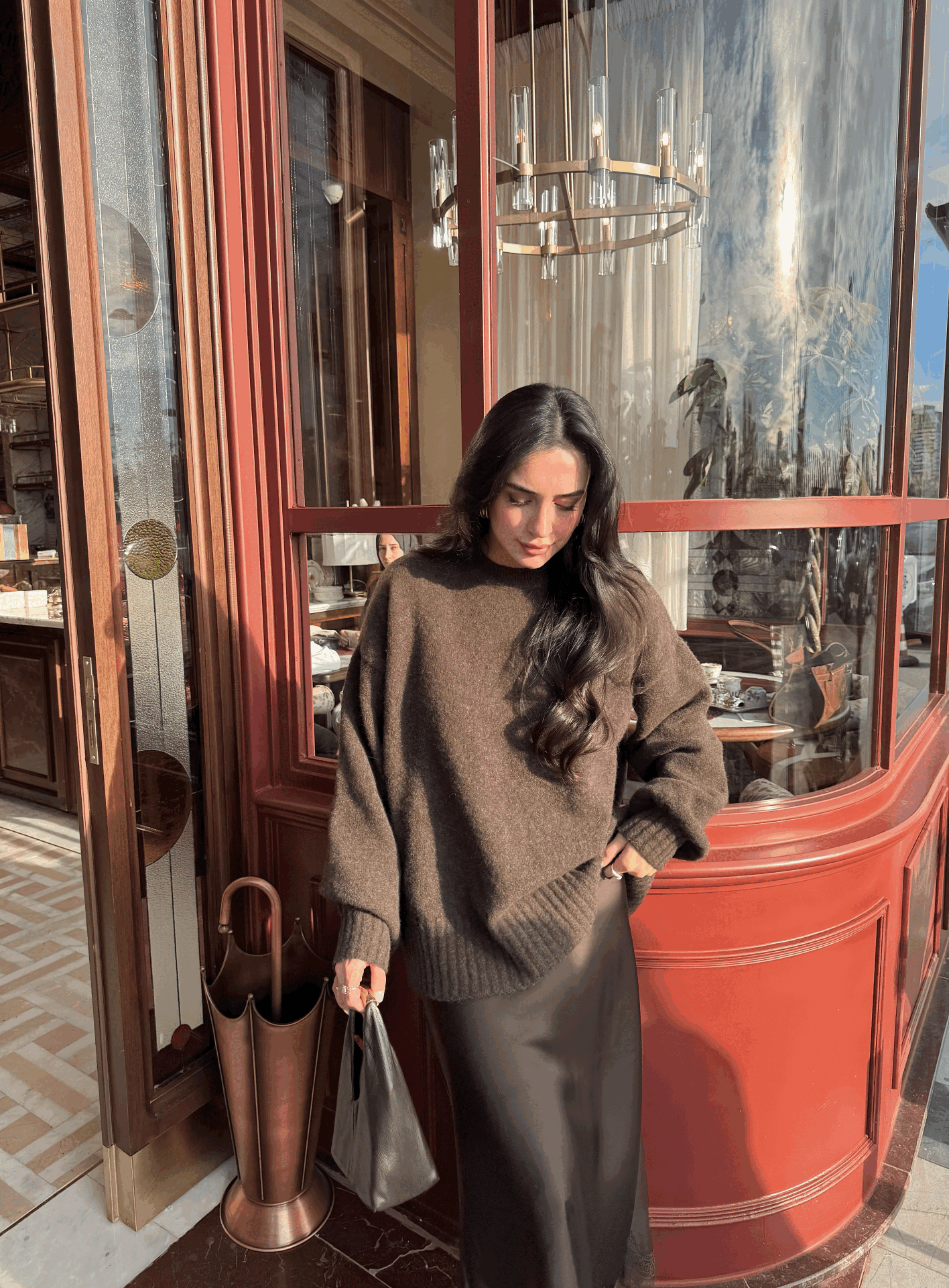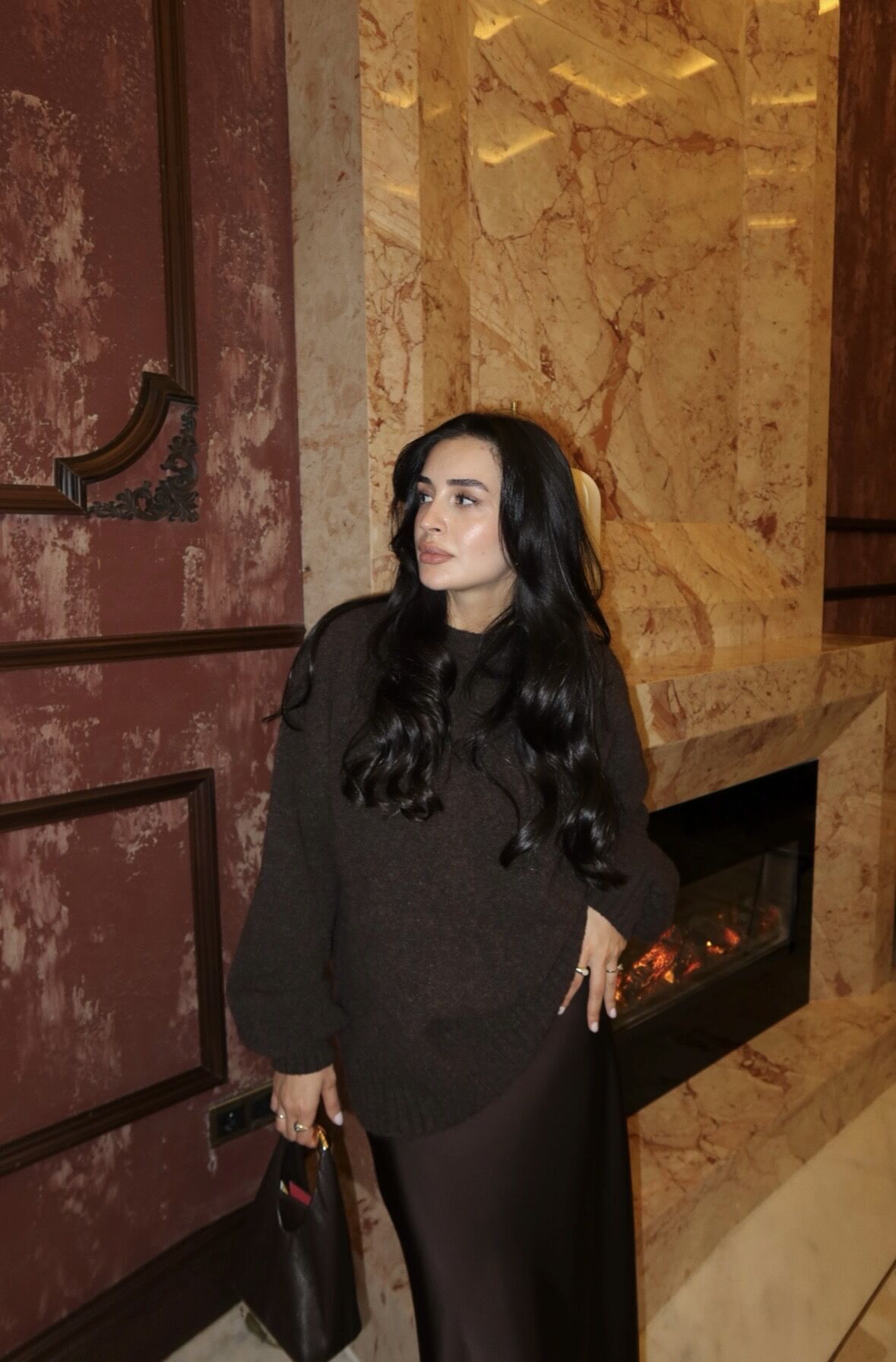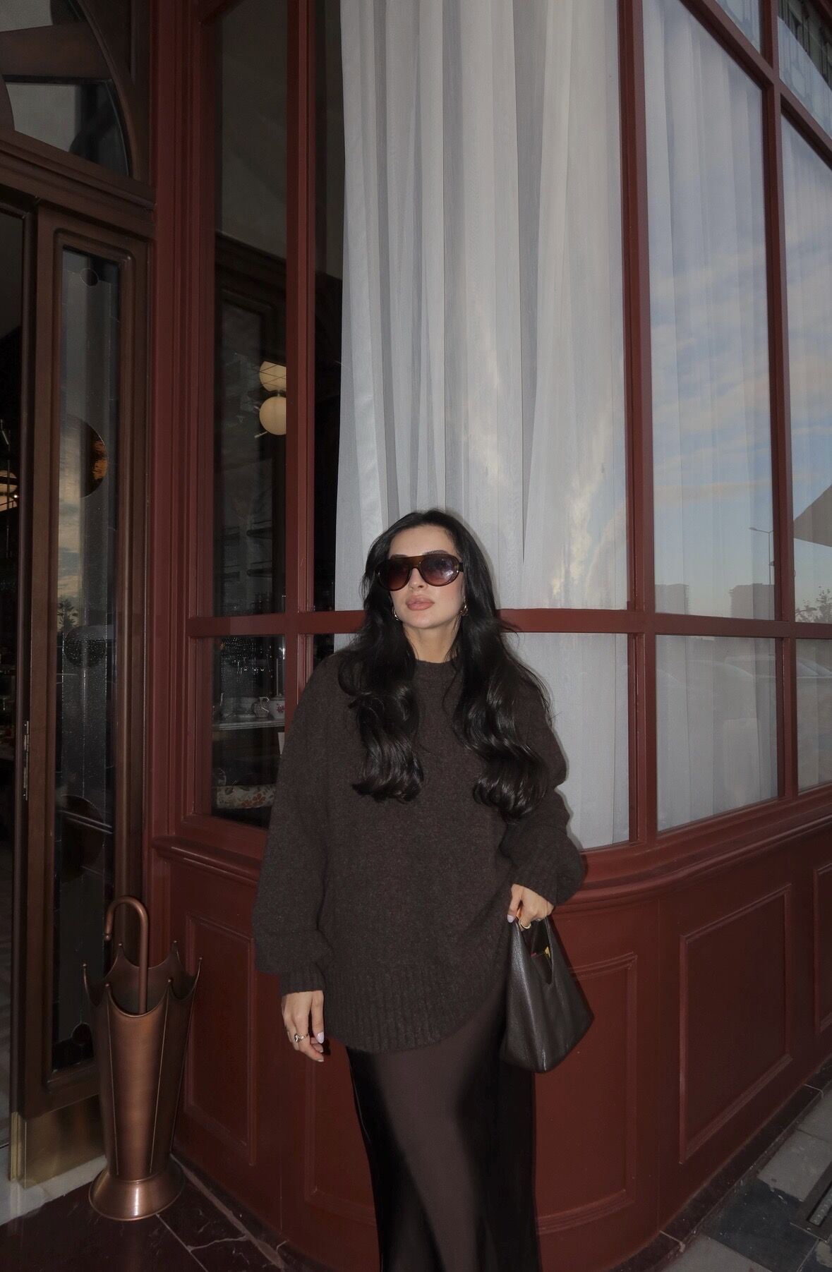Bu şık ve rahat, kalın yumoş kazak, sonbahar ve kış aylarının vazgeçilmezi olacak. Oversize kesimi ve zengin kahverengi ve tonu ile hem modern hem de zamansız bir görünüm sunar.