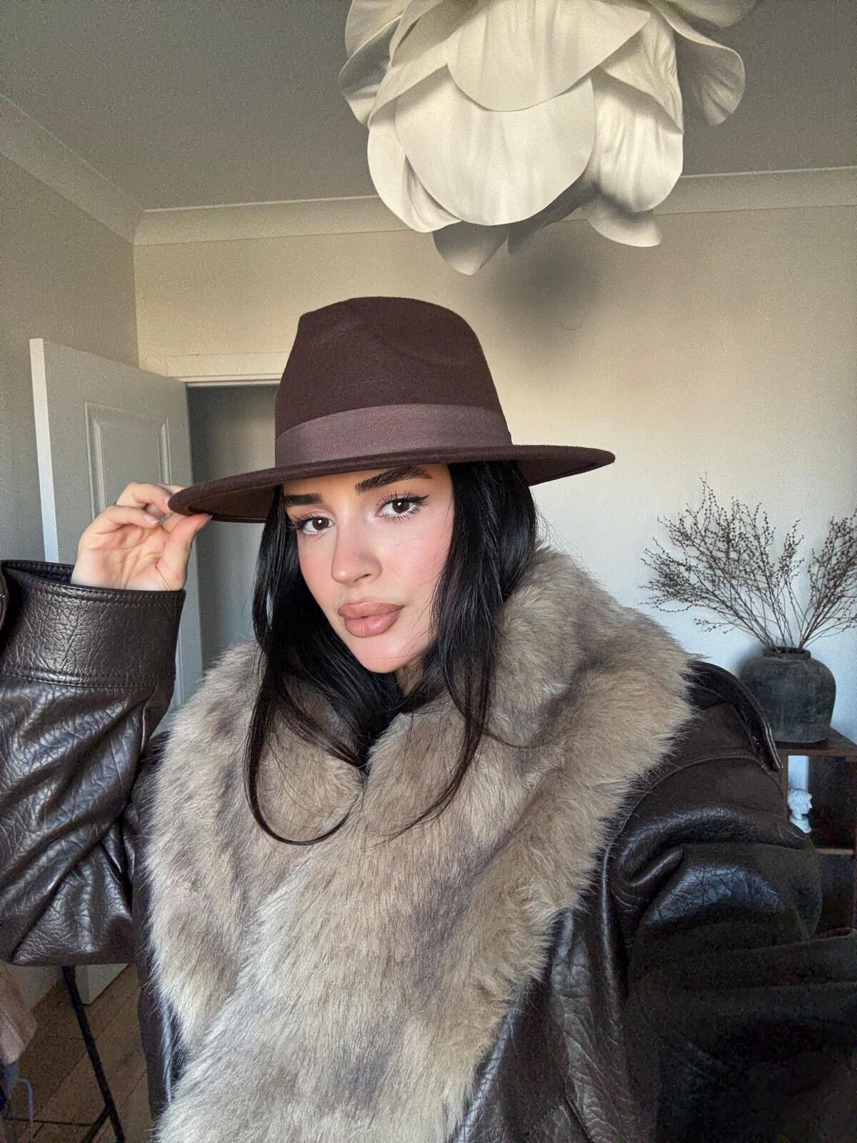 Bu Kahverengi Şapka ile her kombininize sofistike bir hava katın. Yüksek kaliteli, mat ve tok kumaşı sayesinde formunu korur. Geniş, düz siperliği yüz hatlarınıza gölge düşürerek gizemli ve çekici bir görünüm sağlar. Kürk yakalı bir deri ceketten, sade bir trençkota kadar, kış ve sonbahar gardırobunuzun vazgeçilmezi olacak.