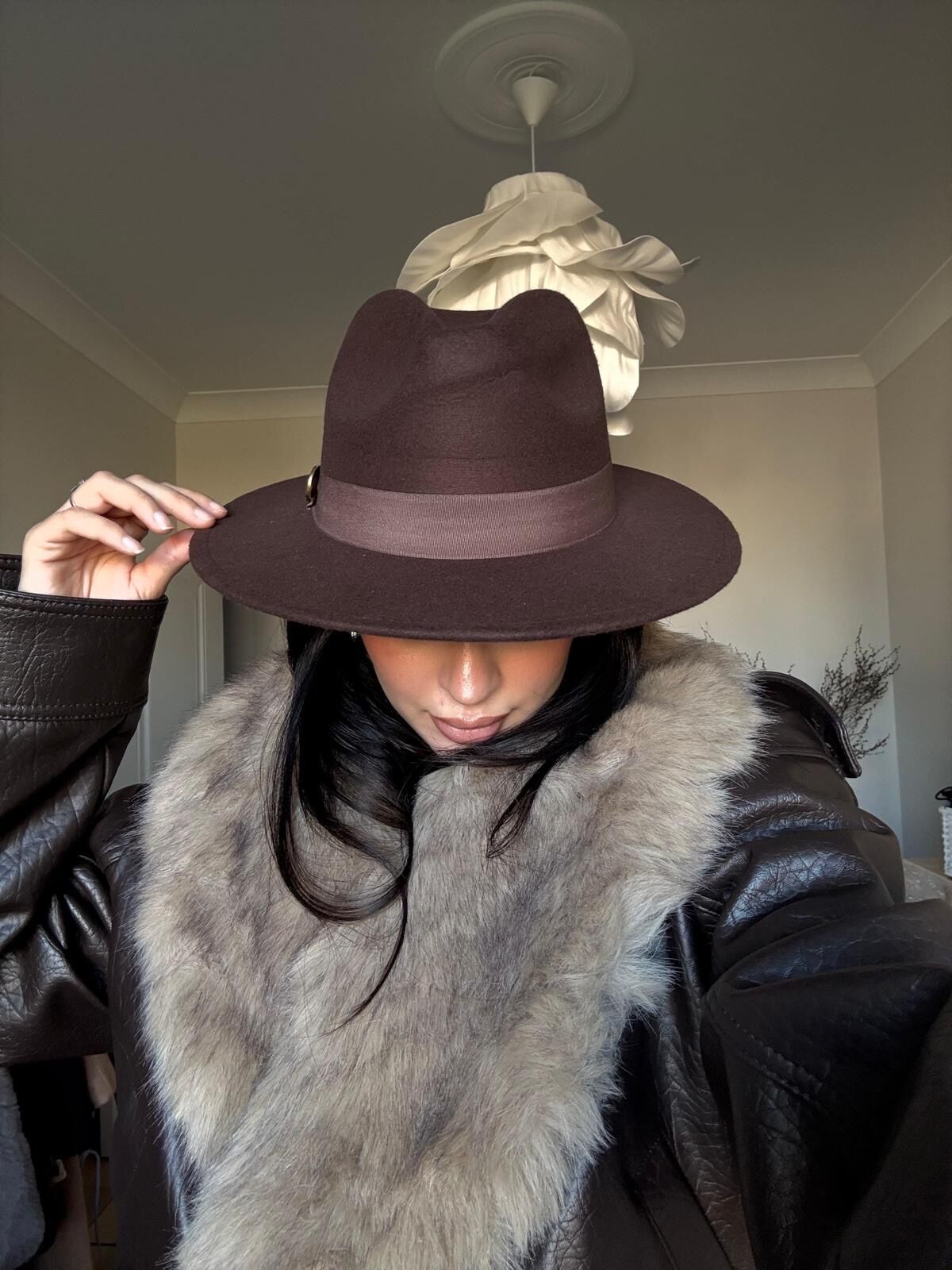 Bant detaylı fötr şapka Kahverengi