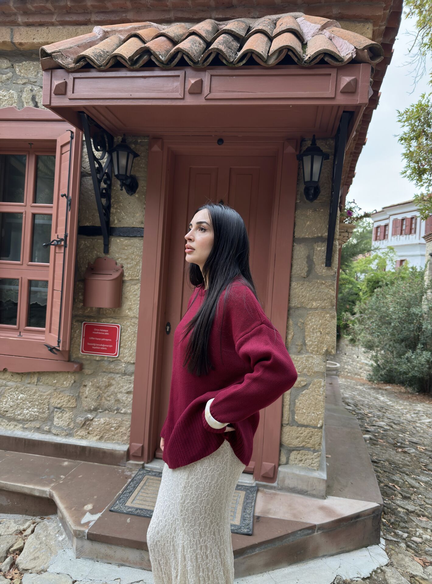 Derin bordo tonu, taş sokaklarda, kahve molalarında ya da bir kış akşamı buluşmasında