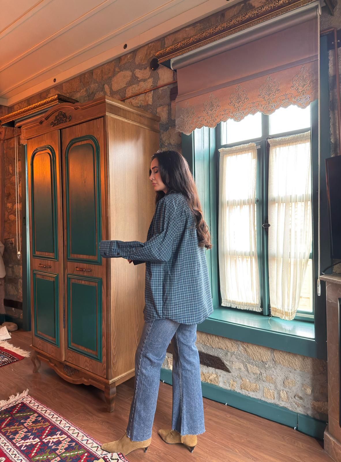 Zamansız kareli deseni ve yumuşak dokusuyla günlük şıklığı yeniden tanımlayan bu gömlek, rahat kesimiyle gün boyu konfor sunar. Yaka bağlama detayı modele feminen ve sofistike bir hava katarken, klasik formu sayesinde hem casual hem de özenli kombinlere kolayca uyum sağlar.