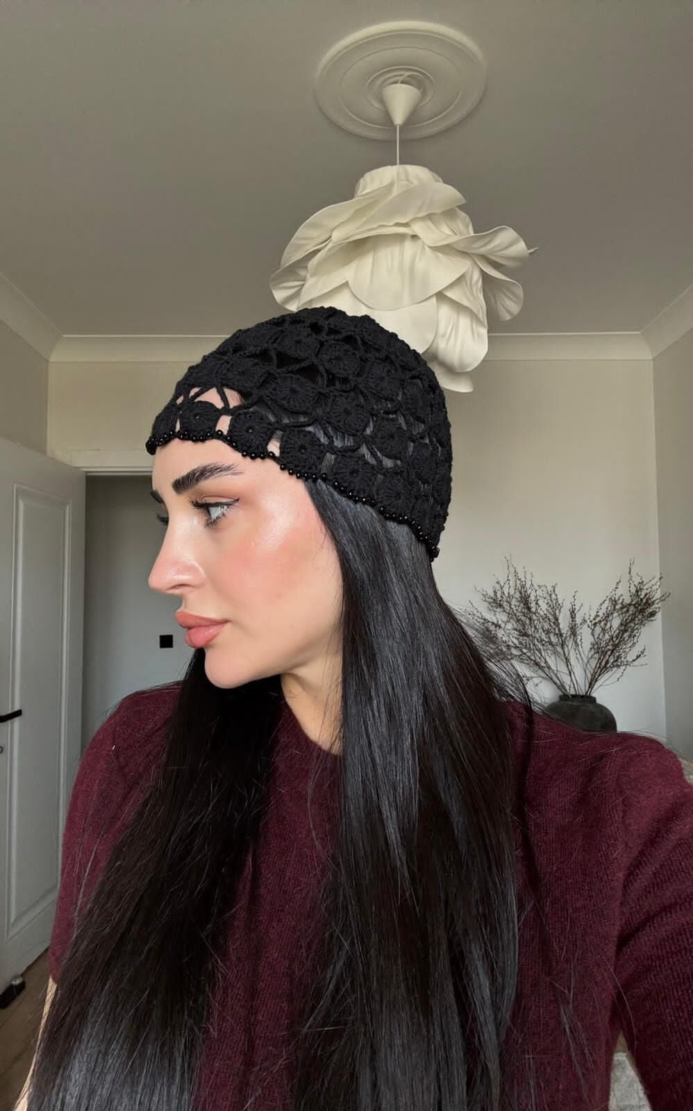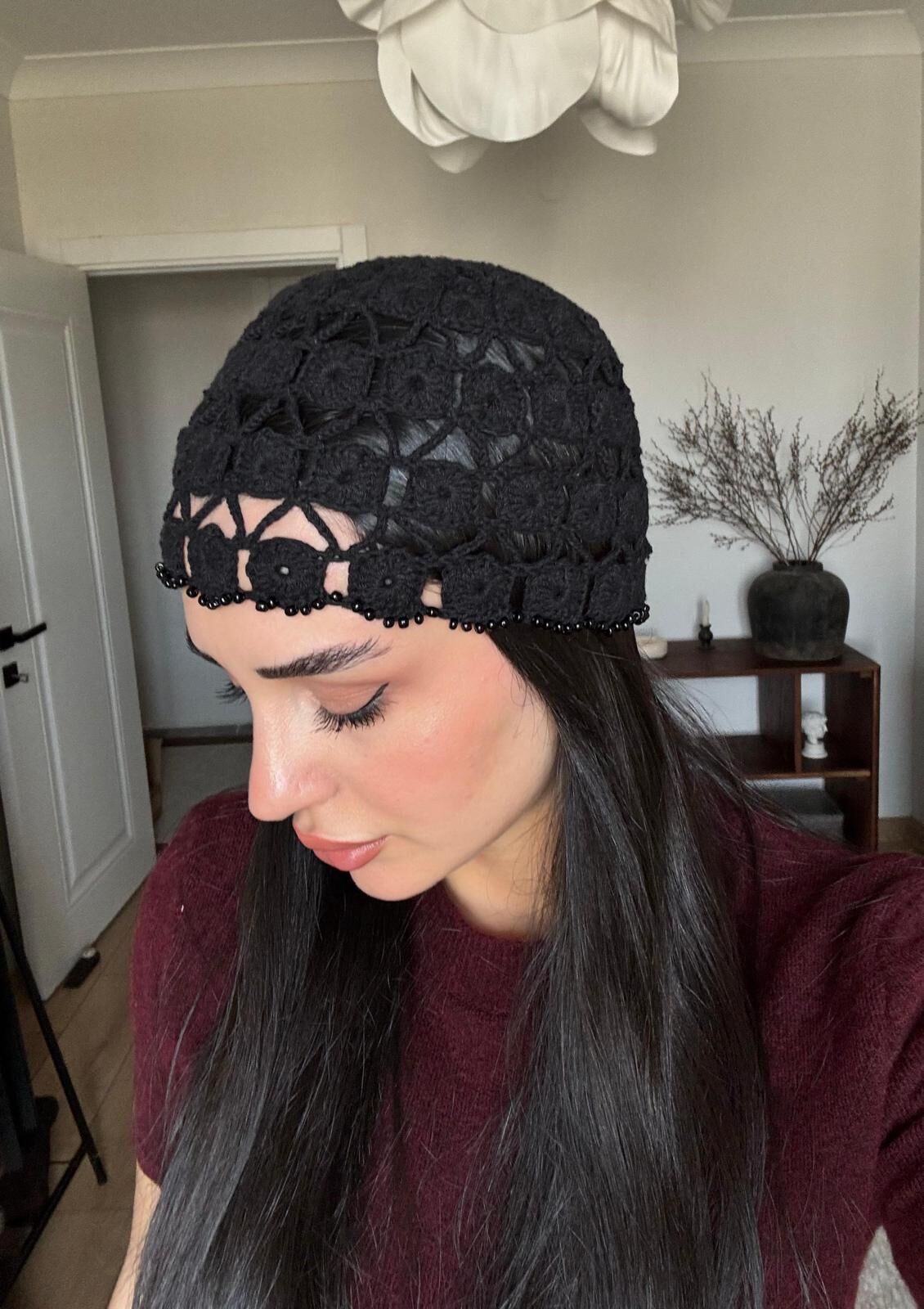 Çok işlemeli el emeği kafa aksesuarı Siyah