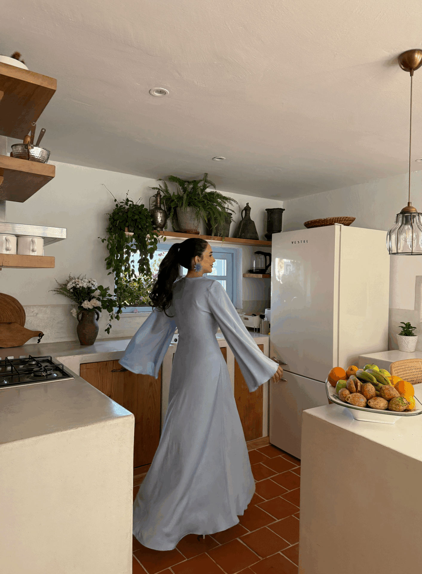 • Kalıp: Uzun elbise formu; vücudu nazikçe saran, dengeli bir dökümlülük sağlar.