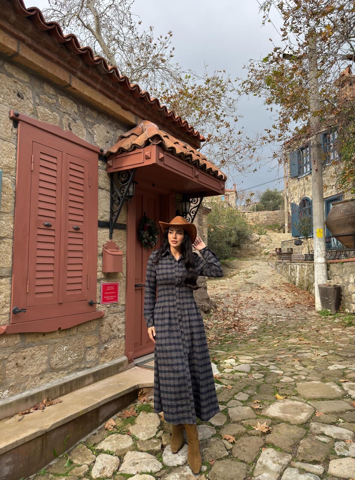 Ekoseli gömlek elbise lacivert vizon - M