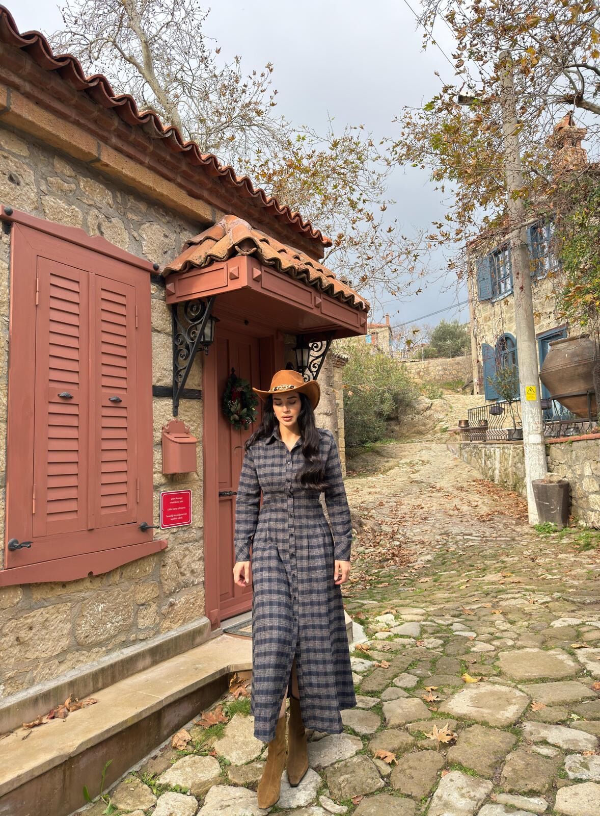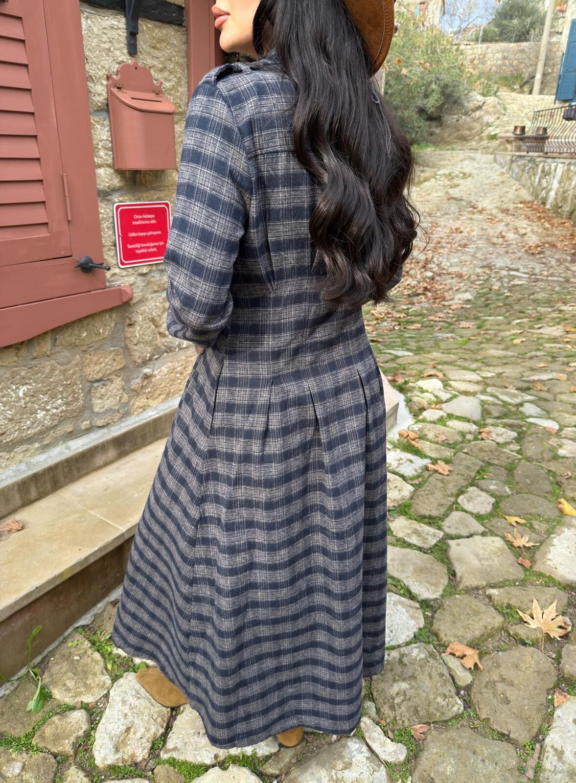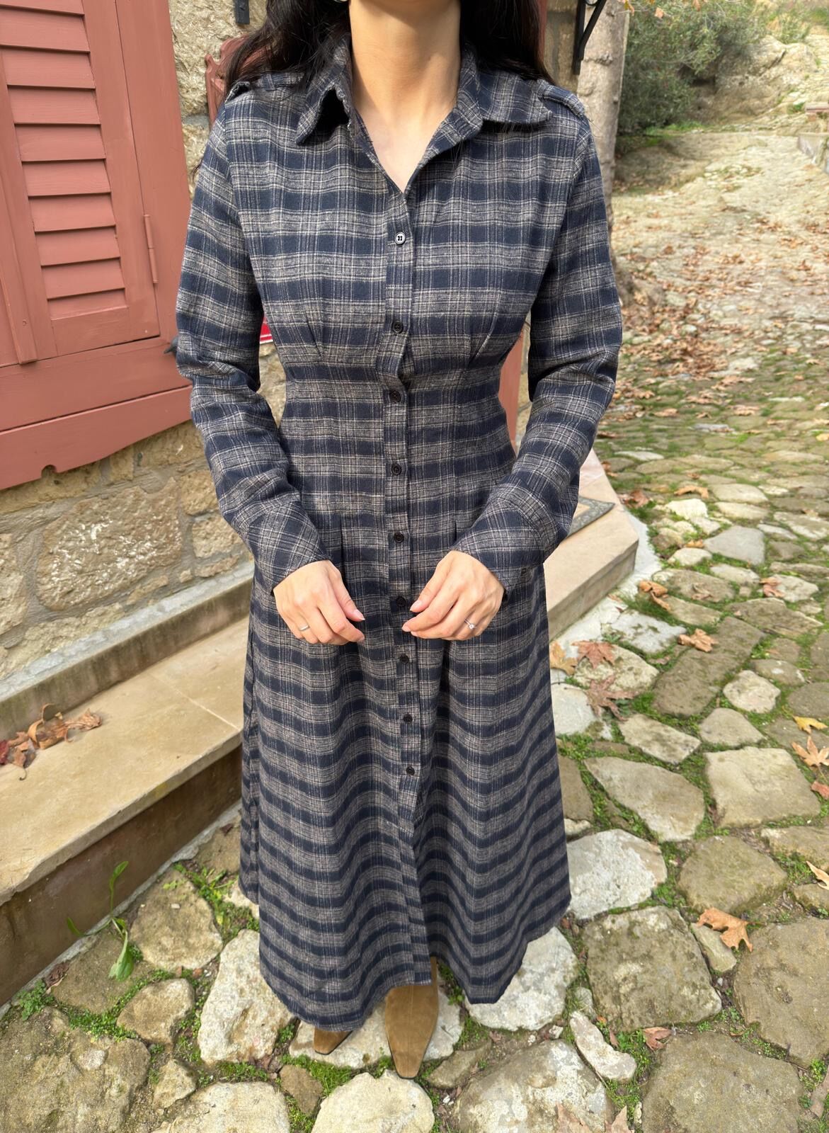 Ekoseli gömlek elbise lacivert vizon - S