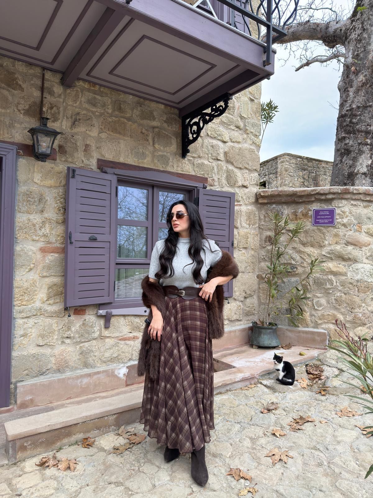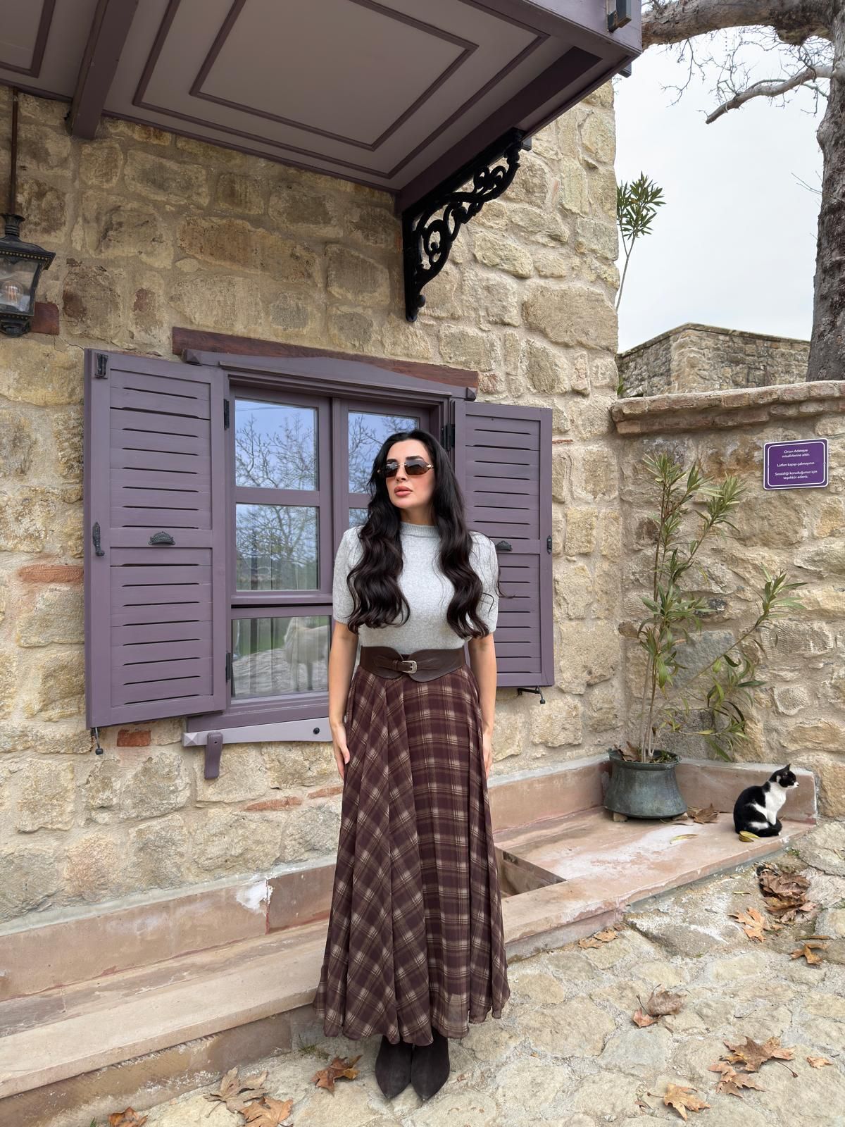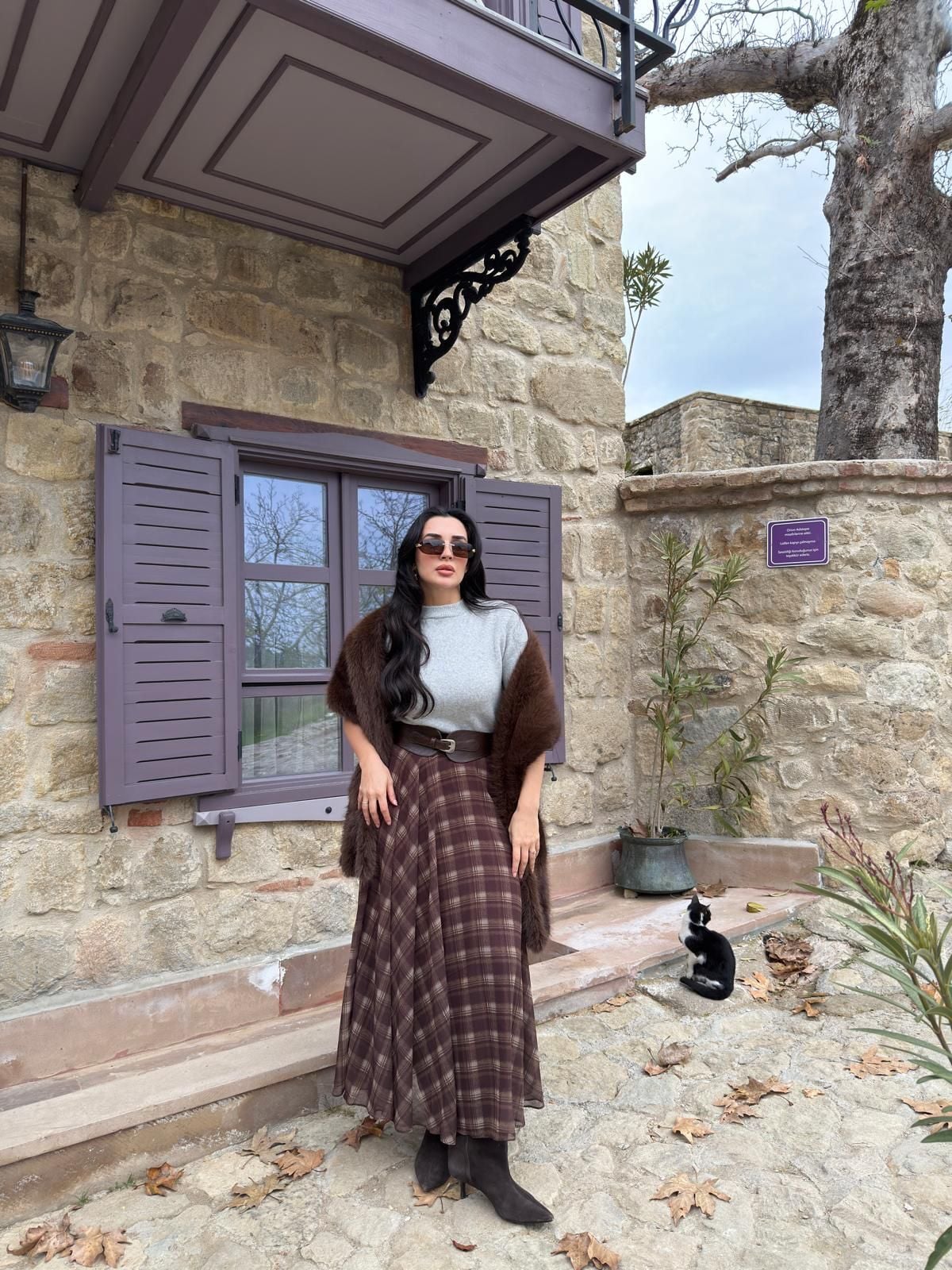 Ekoseli tül etek - kahverengi S - Kahverengi