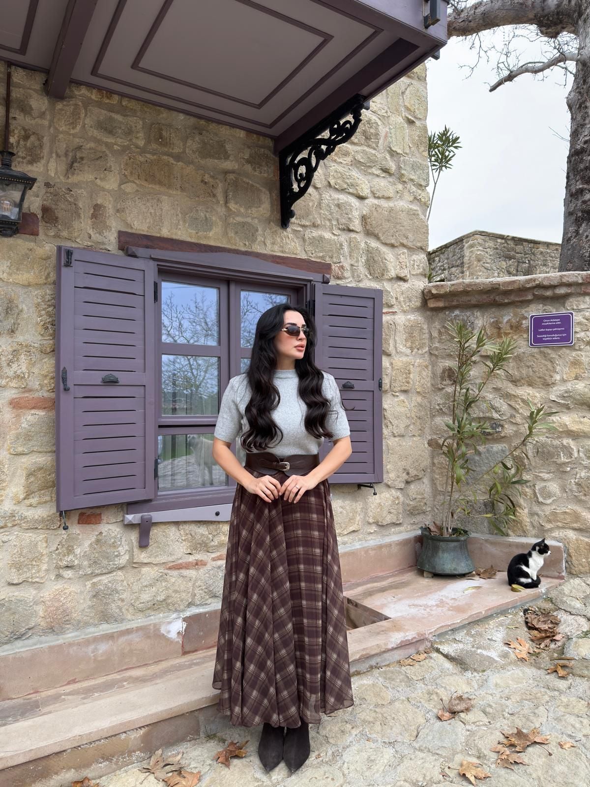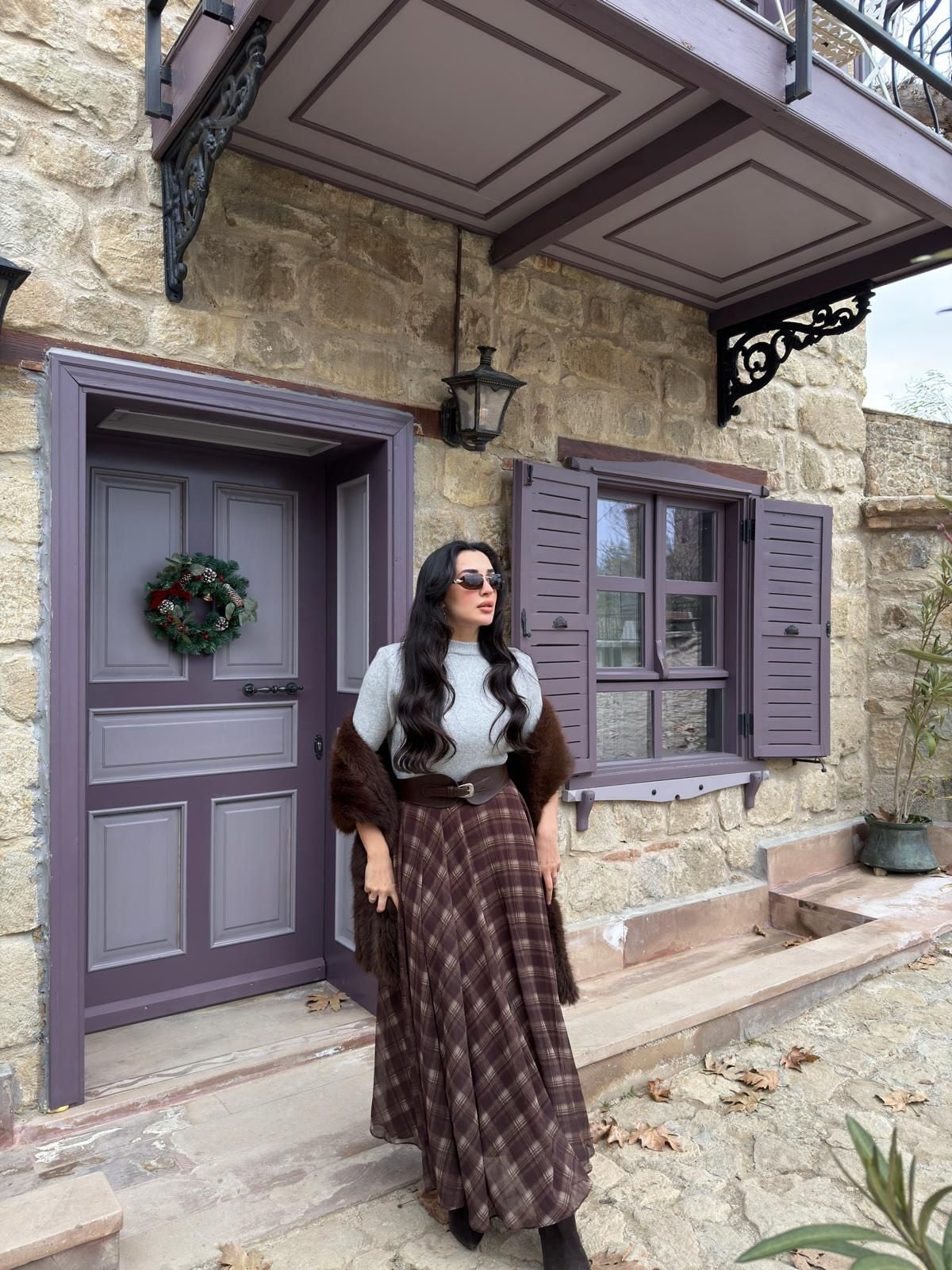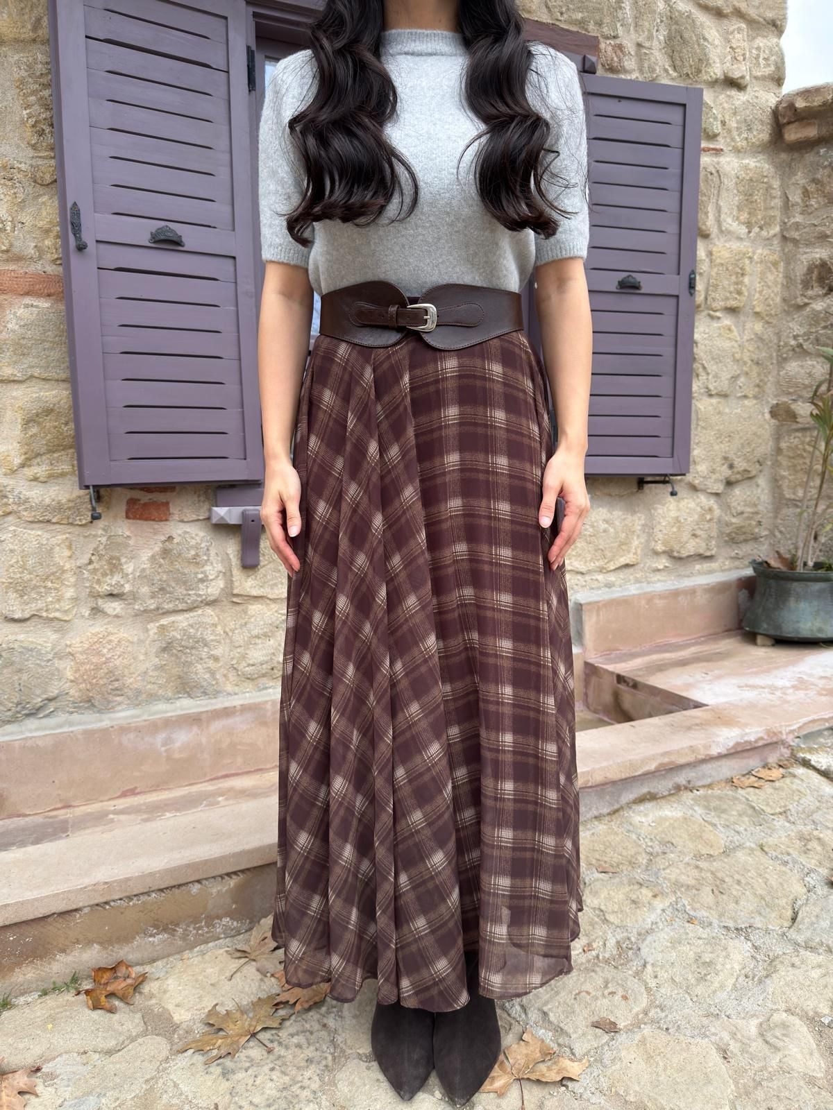 Ekoseli tül etek - kahverengi S - Kahverengi