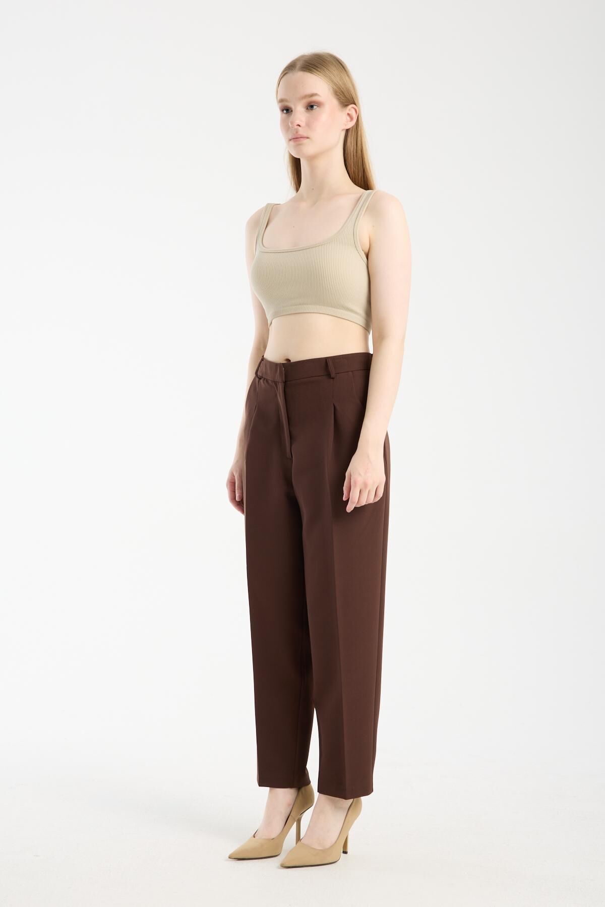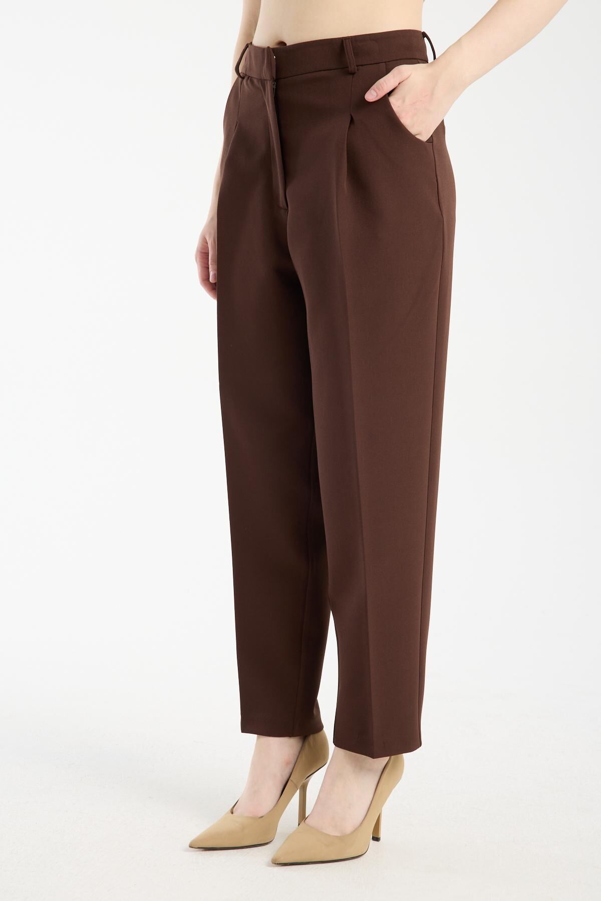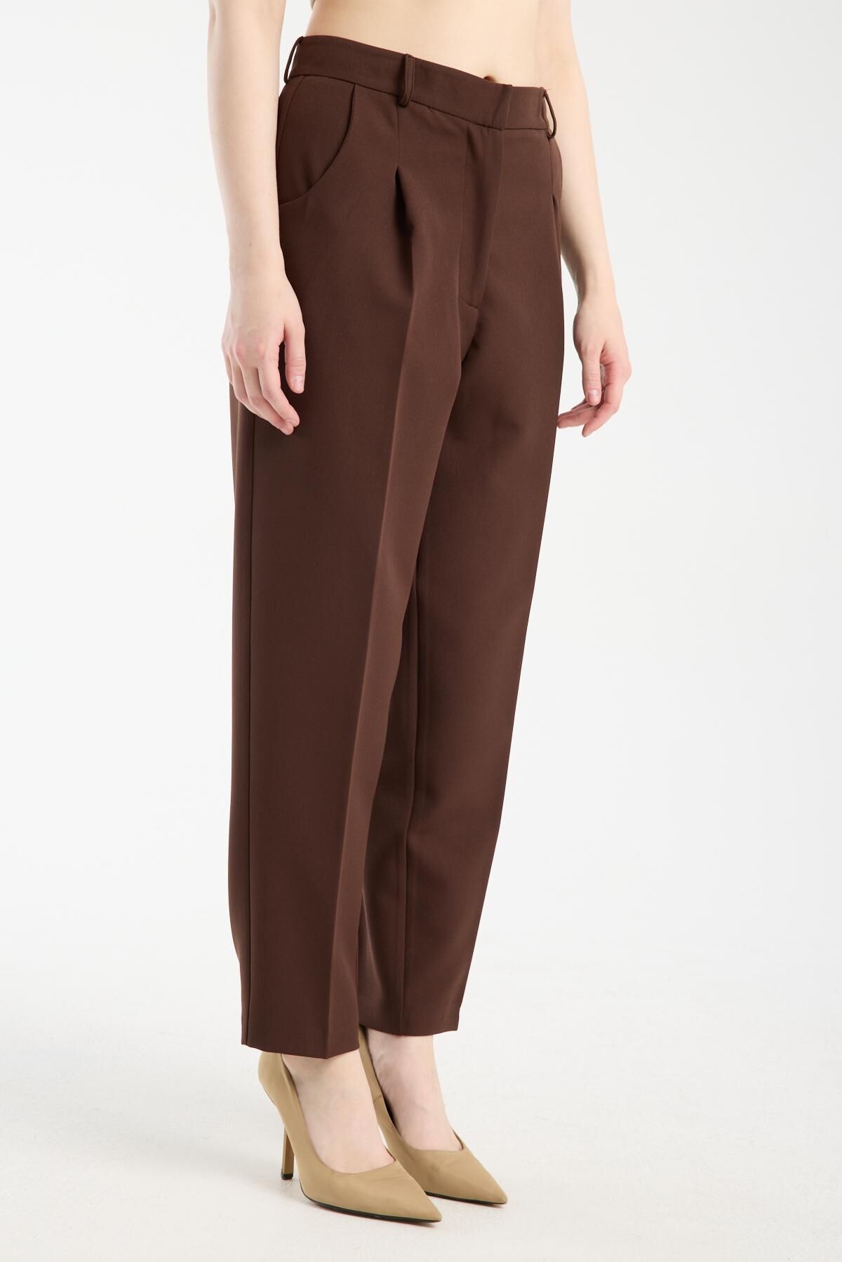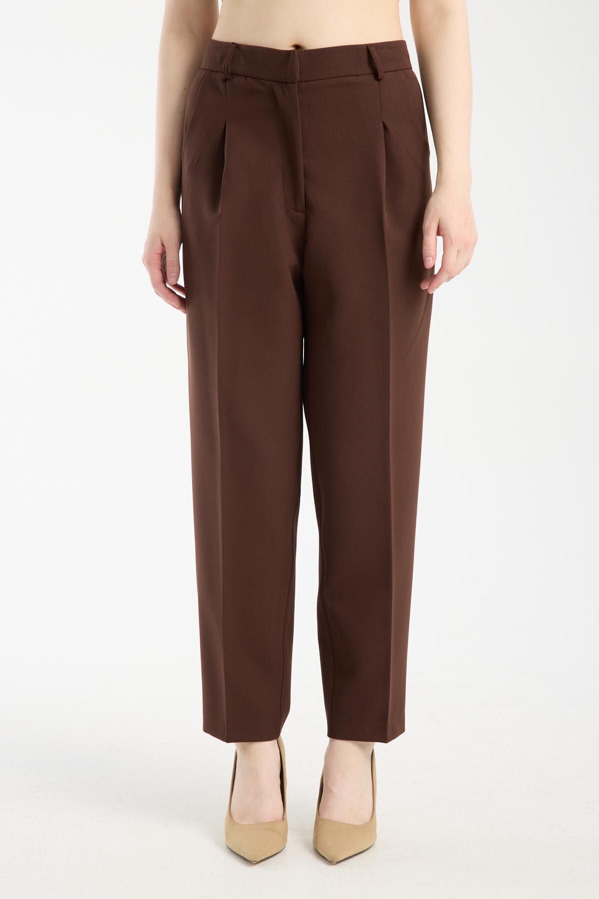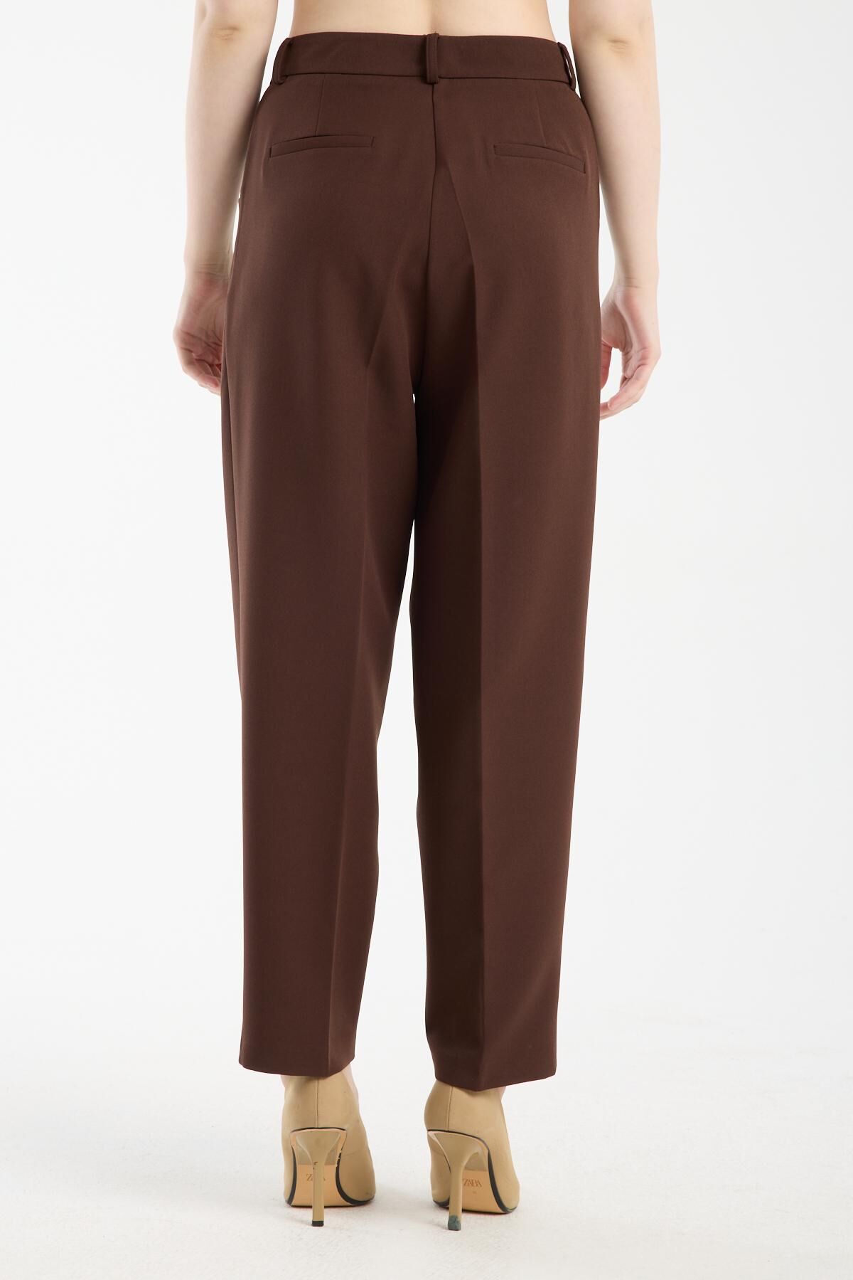 Havuç kesim pileli pantolon Kahverengi - 42