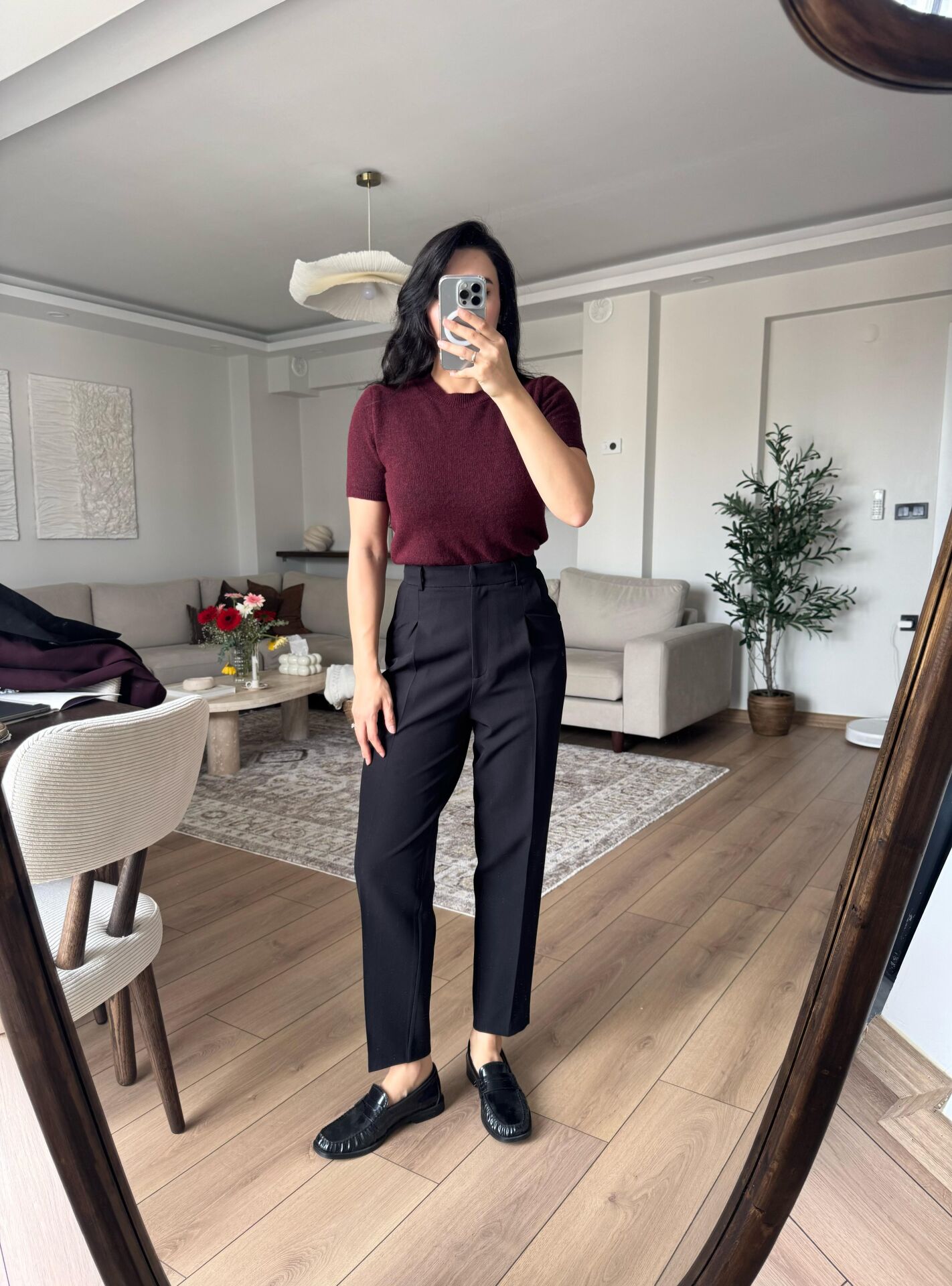 Zamansız şıklığıyla gardırobun kurtarıcısı olacak bu pantolon, modern ve sade formuyla günün her anına uyum sağlıyor. Bel kısmındaki pens detayları vücut formunu zarifçe vurgularken, hafif esnek kumaşı gün boyu konfor sunar. Topuklularla ofis stiline, loafer veya sneaker’larla günlük görünüme kolayca uyum sağlar.