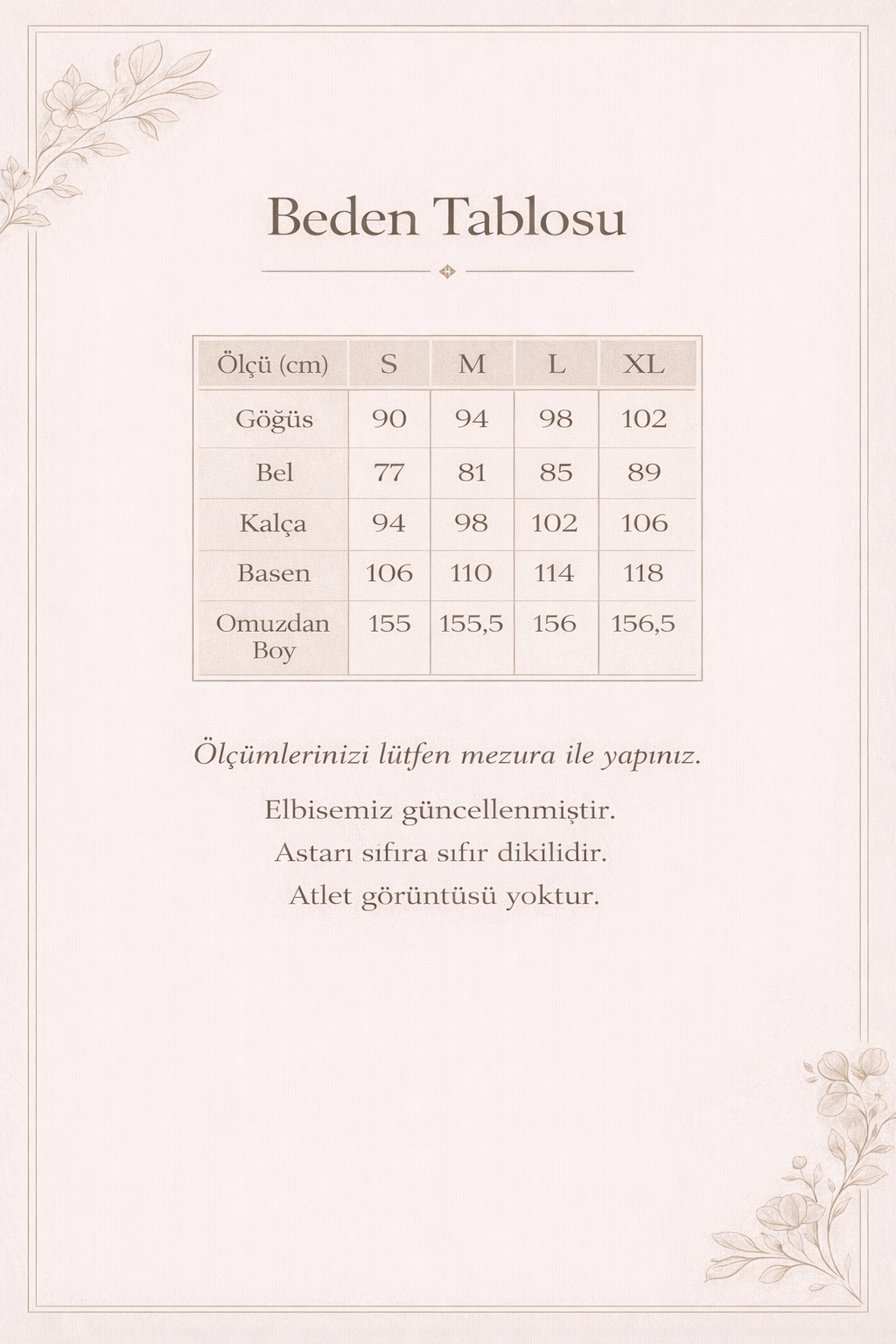 • Kumaş: Hafif, akışkan ve kalın bir saten.