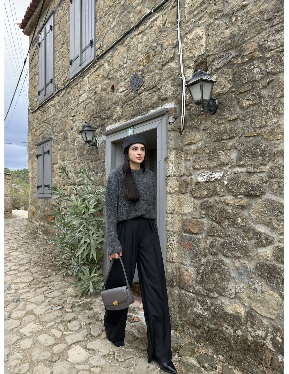Modern ve zarif bir görünüm için tasarlanan yüksek bel geniş paça pantolon, hem rahatlığı hem şıklığı bir arada sunar. Akıcı dokusu ve dökümlü yapısıyla vücuda zarif bir siluet kazandırır. Günlük kombinlerden ofis şıklığına kadar her ortamda kolayca uyum sağlar.