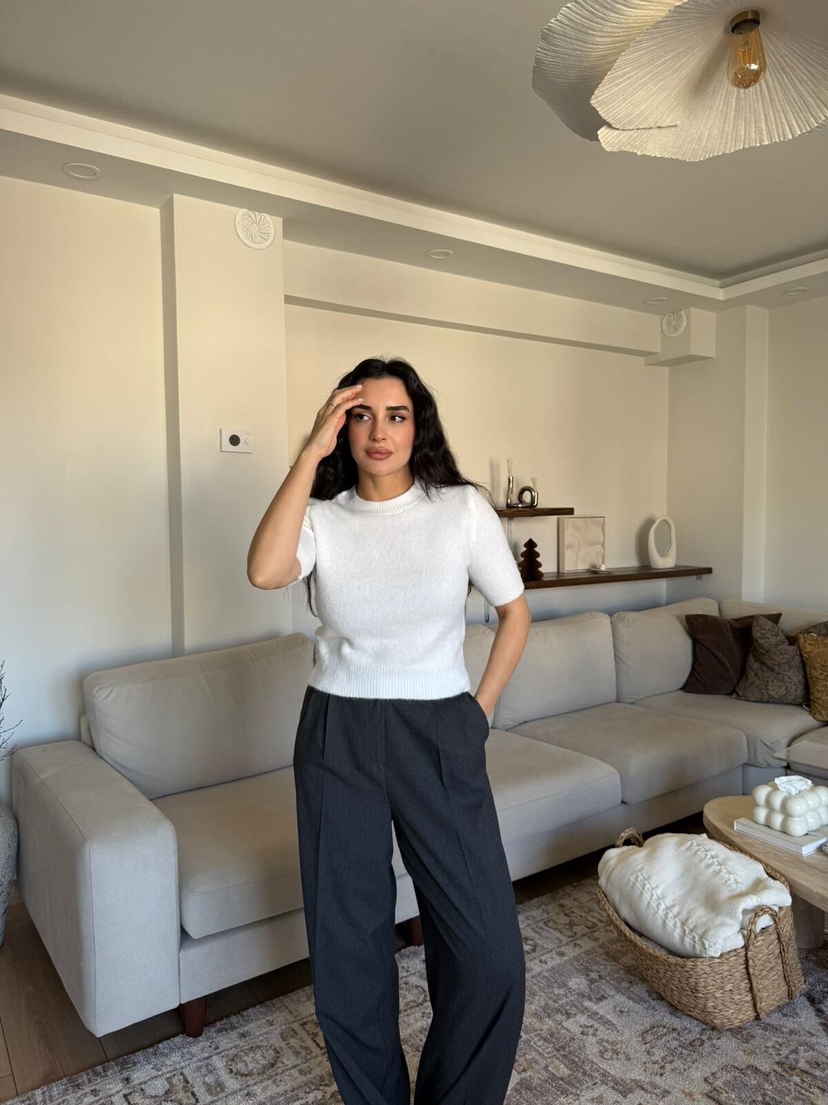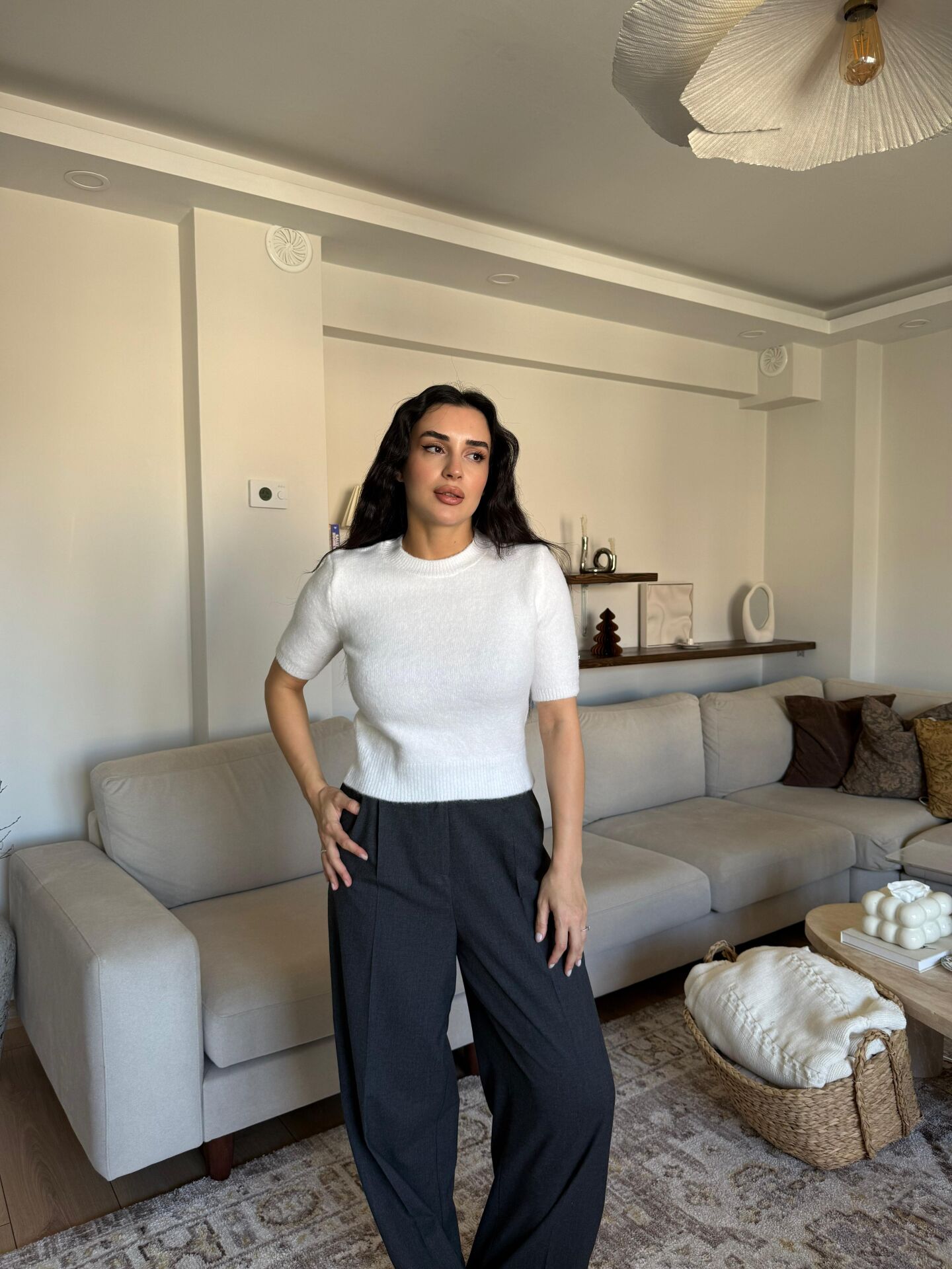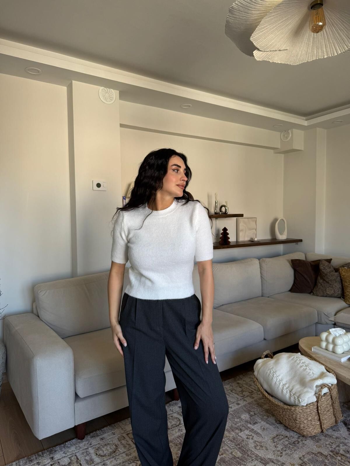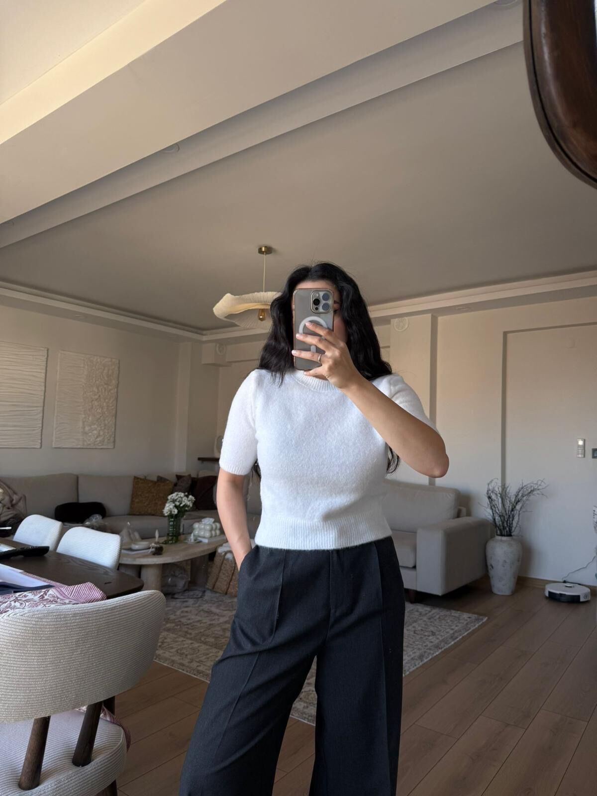 Kısa kollu bisiklet yaka triko bluz kemik - STD