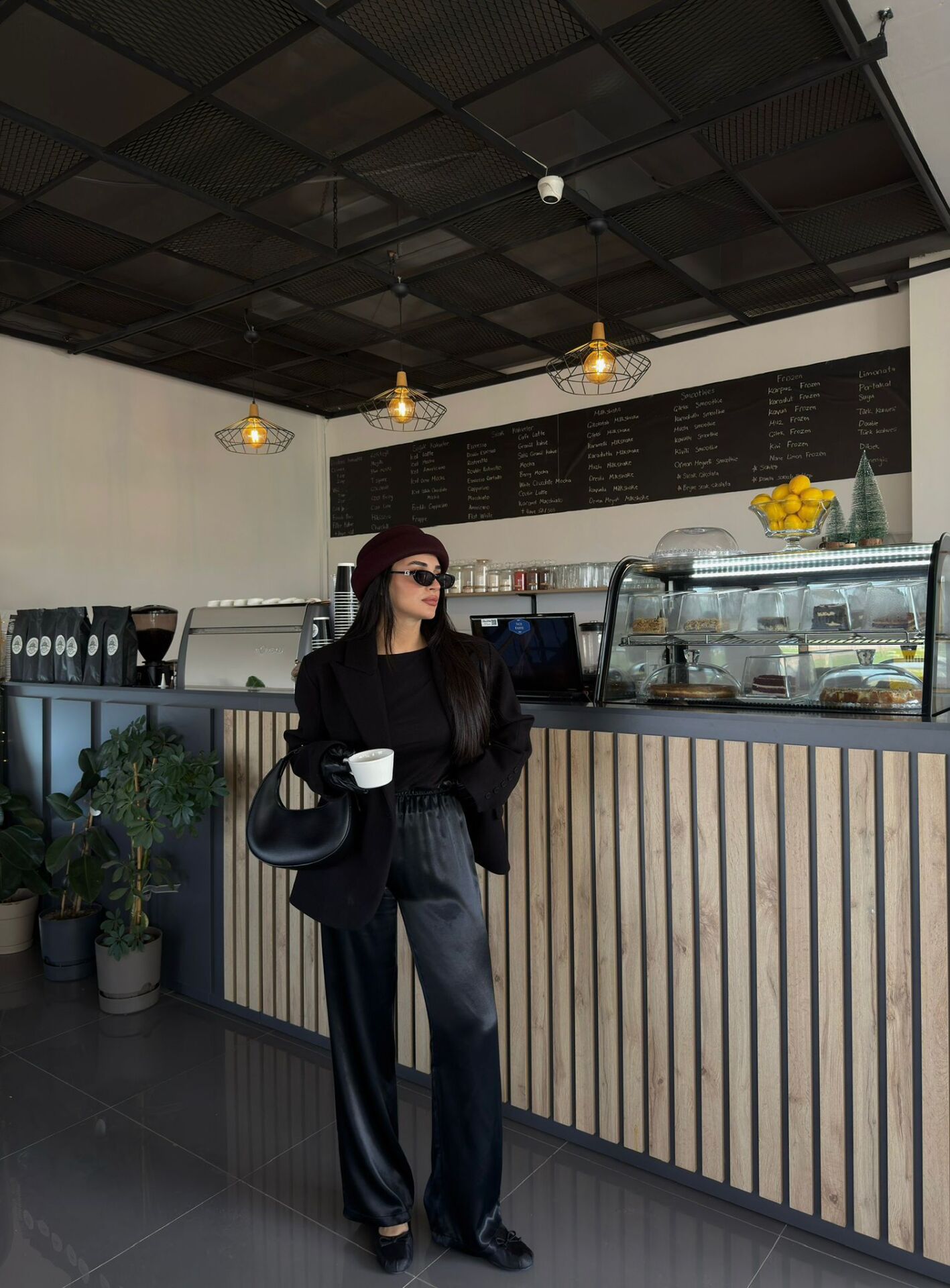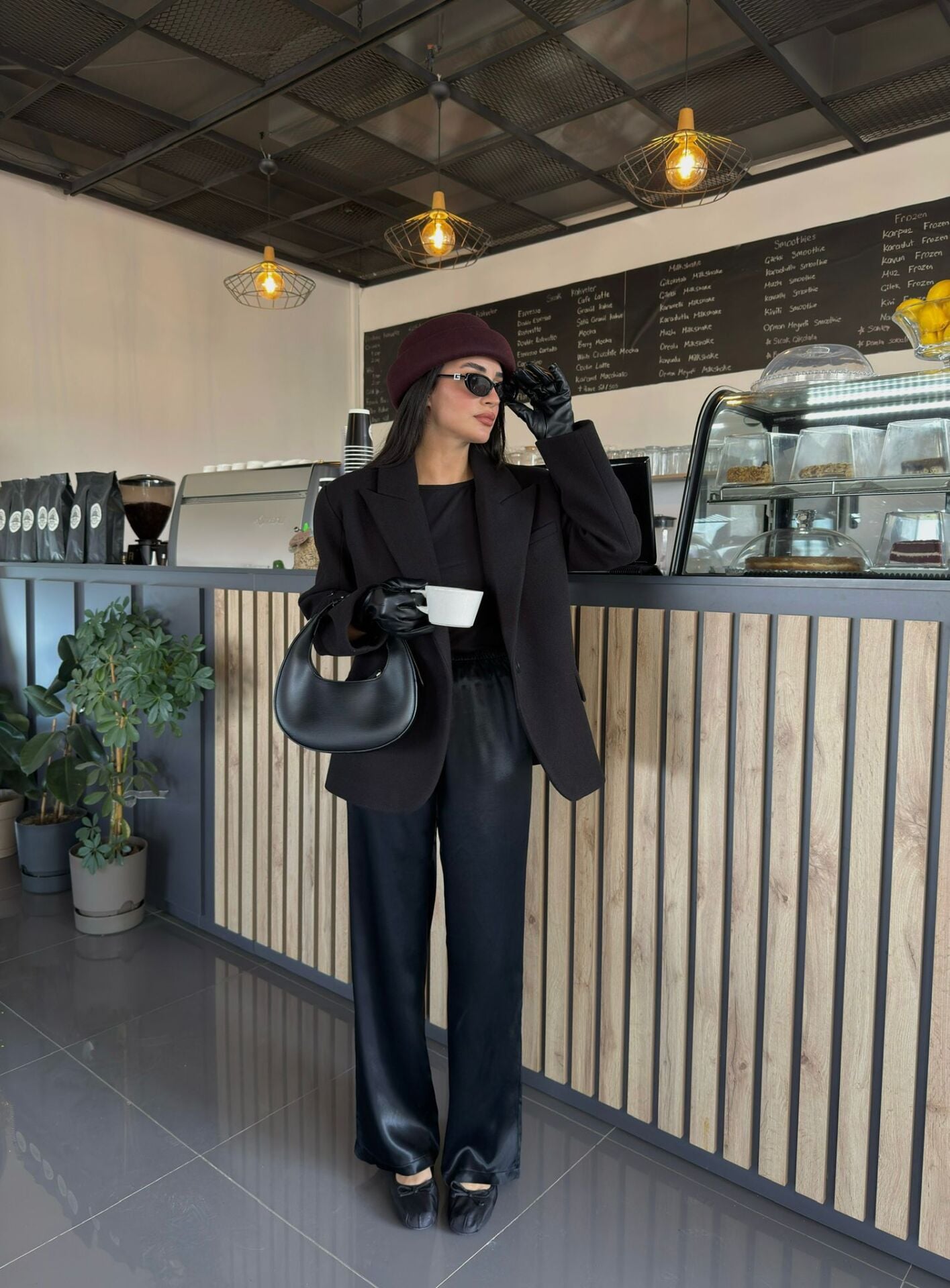 Günlük şıklıkta, ofis kombinlerinde ve akşam stillerinde rahatça kullanabileceğiniz bu model; kumaşındaki hafif parlaklık sayesinde hem modern hem de feminen bir duruş sunar.