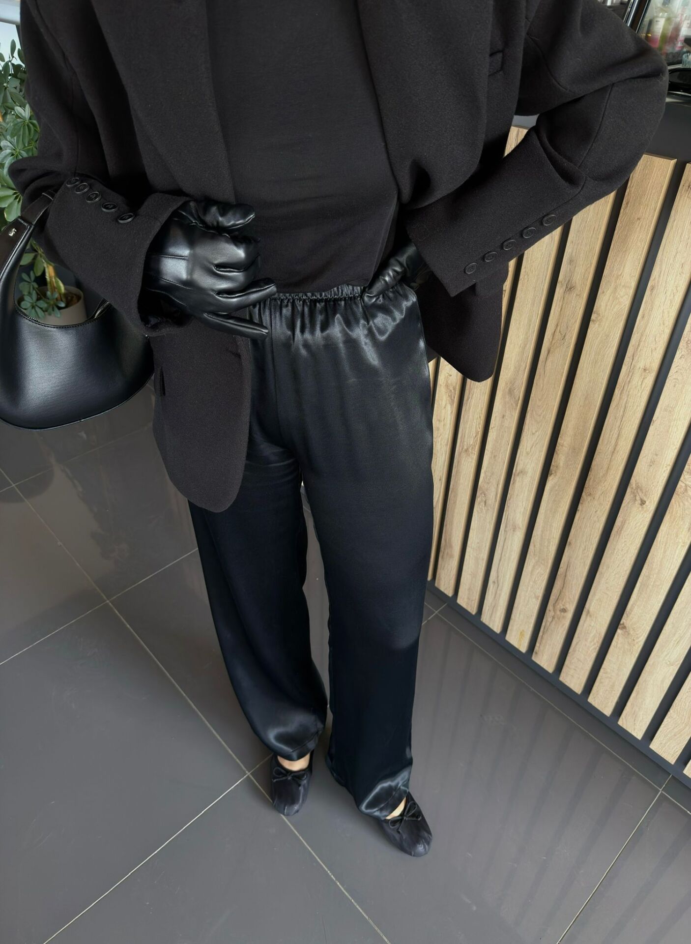 Tavié Saten Dokulu Pantolon, yumuşacık dökümlü formu ve zarif ışıltısıyla gardırobunuzun en zamansız parçalarından biri olmaya aday.