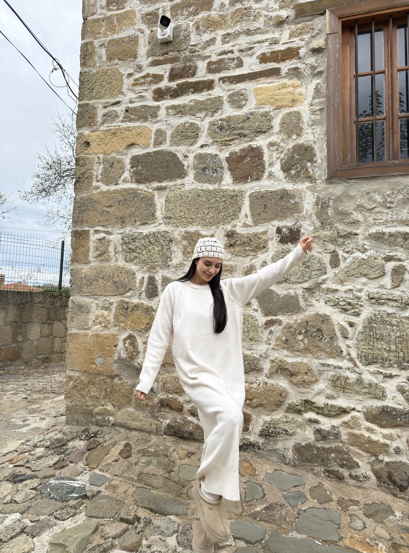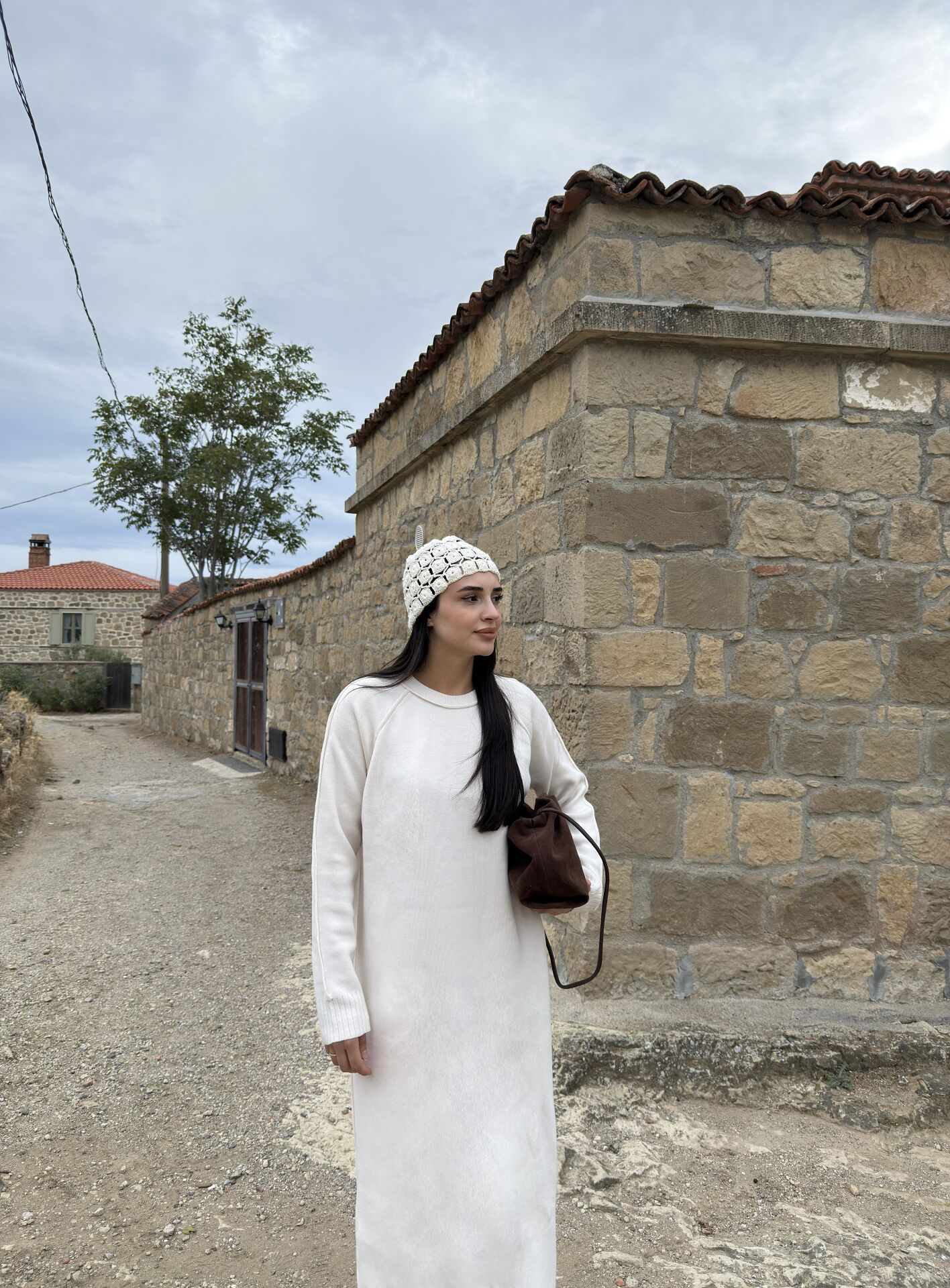 Sade çizgisiyle zamansız bir zarafet sunan Triko Elbise,