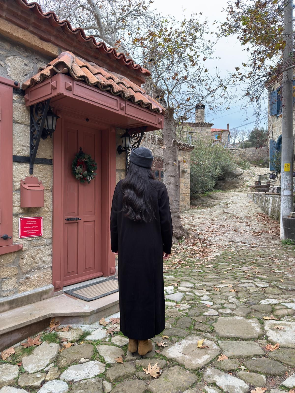 Derin bordo tonu ve uzun silüetiyle tek başına bile güçlü bir duruş yaratır.