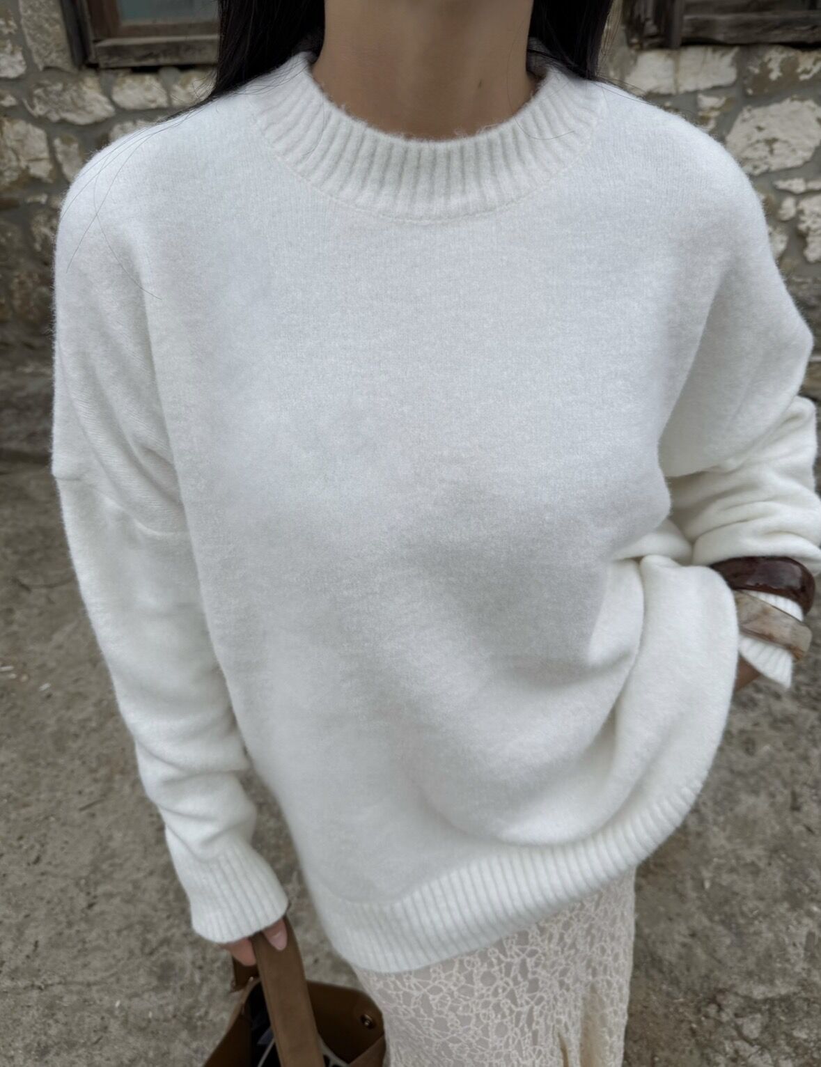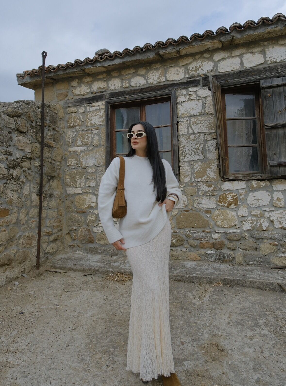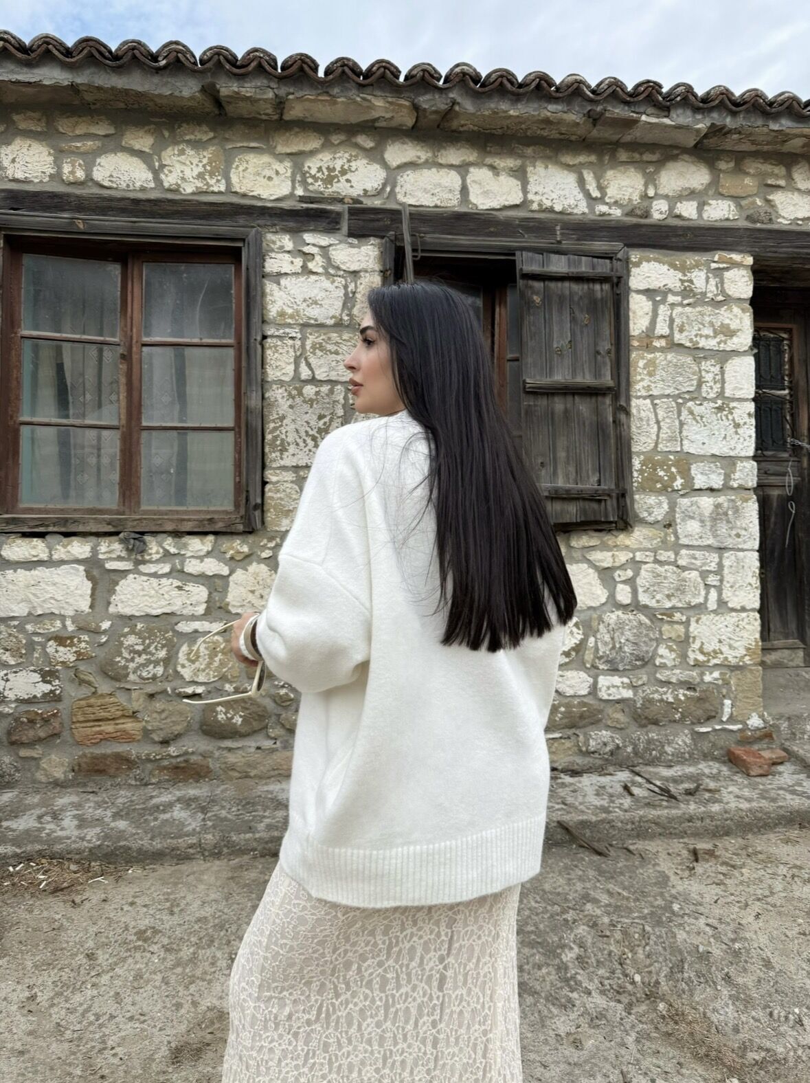 Yumuşacık dokusu ve sade tasarımıyla dolabınızın vazgeçilmezi olacak! Bu beyaz basic triko kazak, günlük kombinlerden ofis şıklığına kadar her ortama uyum sağlar. Yuvarlak yaka detayı ve rahat kesimiyle konforu ön planda tutarken, zarif görünümüyle şıklığı da elden bırakmaz.